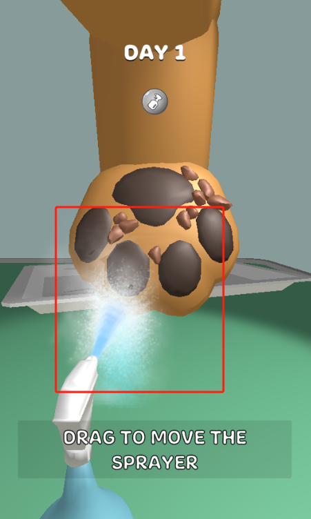 2、第一天任务,拖动喷雾瓶给狗狗爪子喷药,清理爪子上的脏东西。
