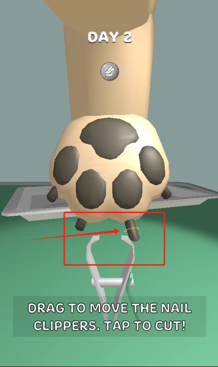 3、第二天任务,拖动指甲剪给猫咪剪指甲,点击屏幕就能完成修剪。