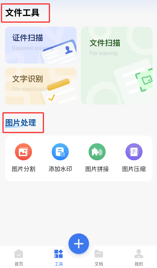 2、"工具箱"提供证件扫描、图片转文字等实用功能,满足多样化办公需求。