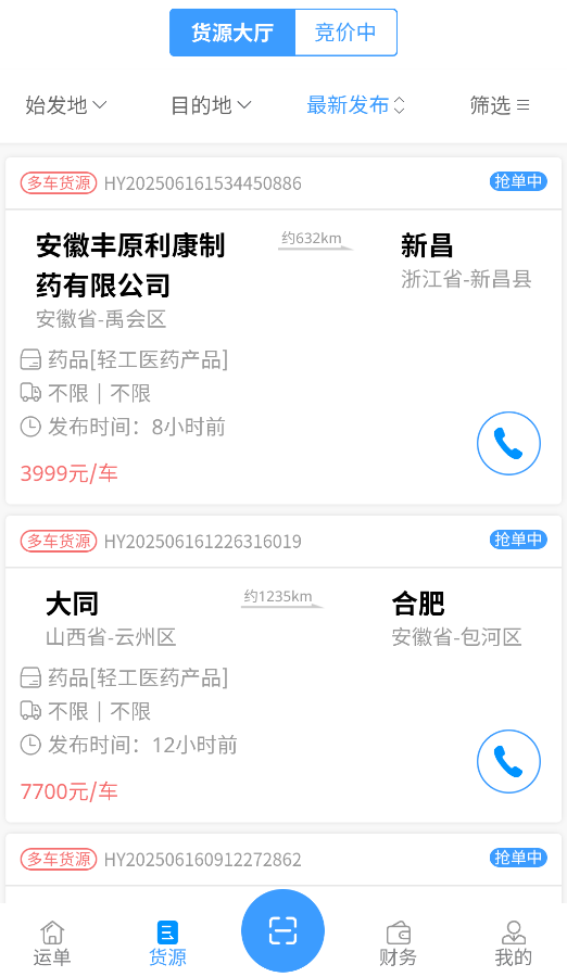 1、多条件货源筛选。支持按货物类型、运输距离、结算方式等15个条件精准筛选,3秒定位理想订单。