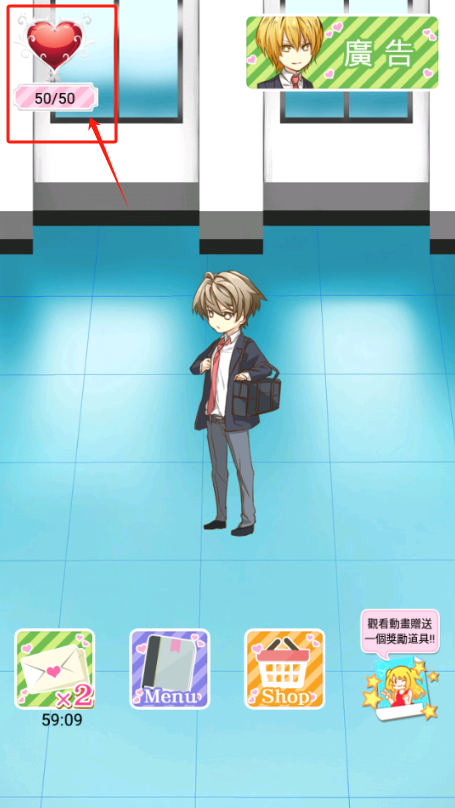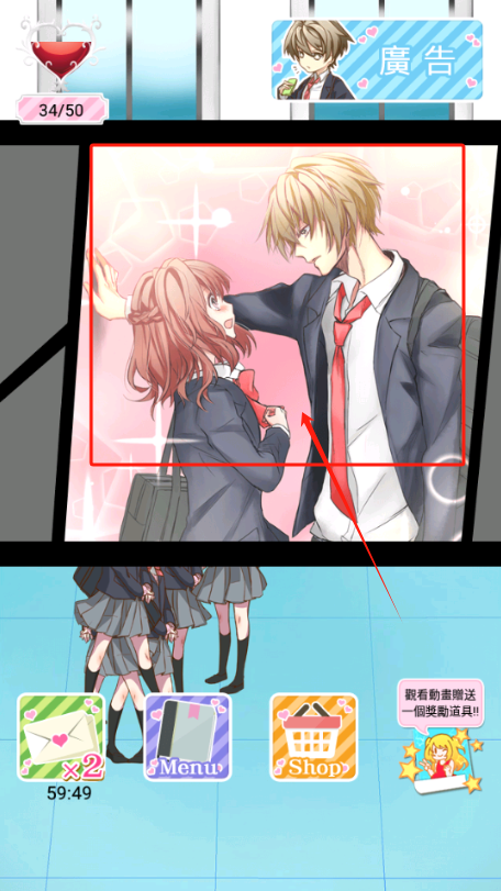 3、进度满50/50,点金发男生互动进入下一关。