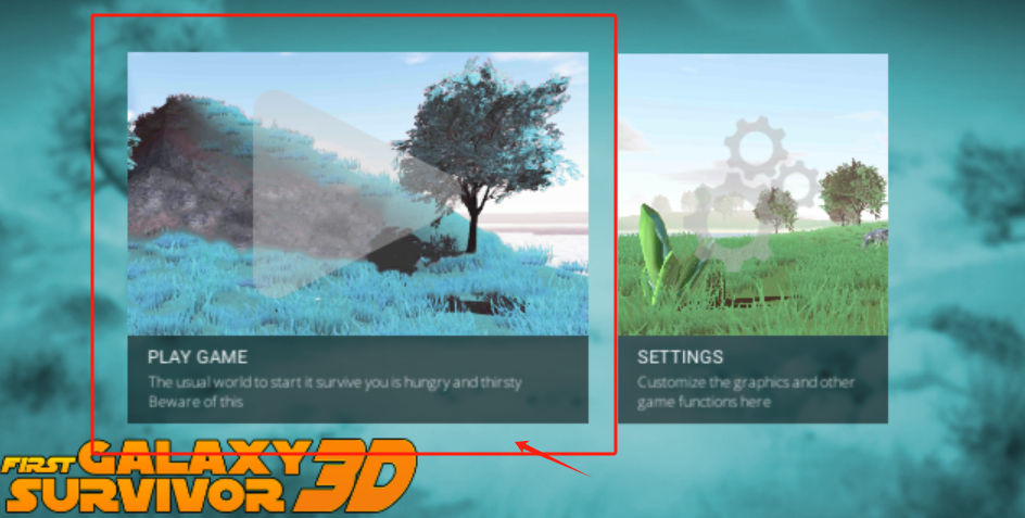 1、点红框里的PLAY GAME开始游戏,右边SETTINGS能调画面设置,注意角色会饿会渴。