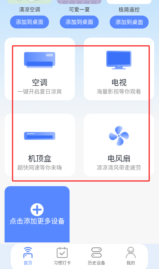 2、通过设备库匹配家电型号,支持电视、空调等10+类设备红外控制,适配主流品牌。