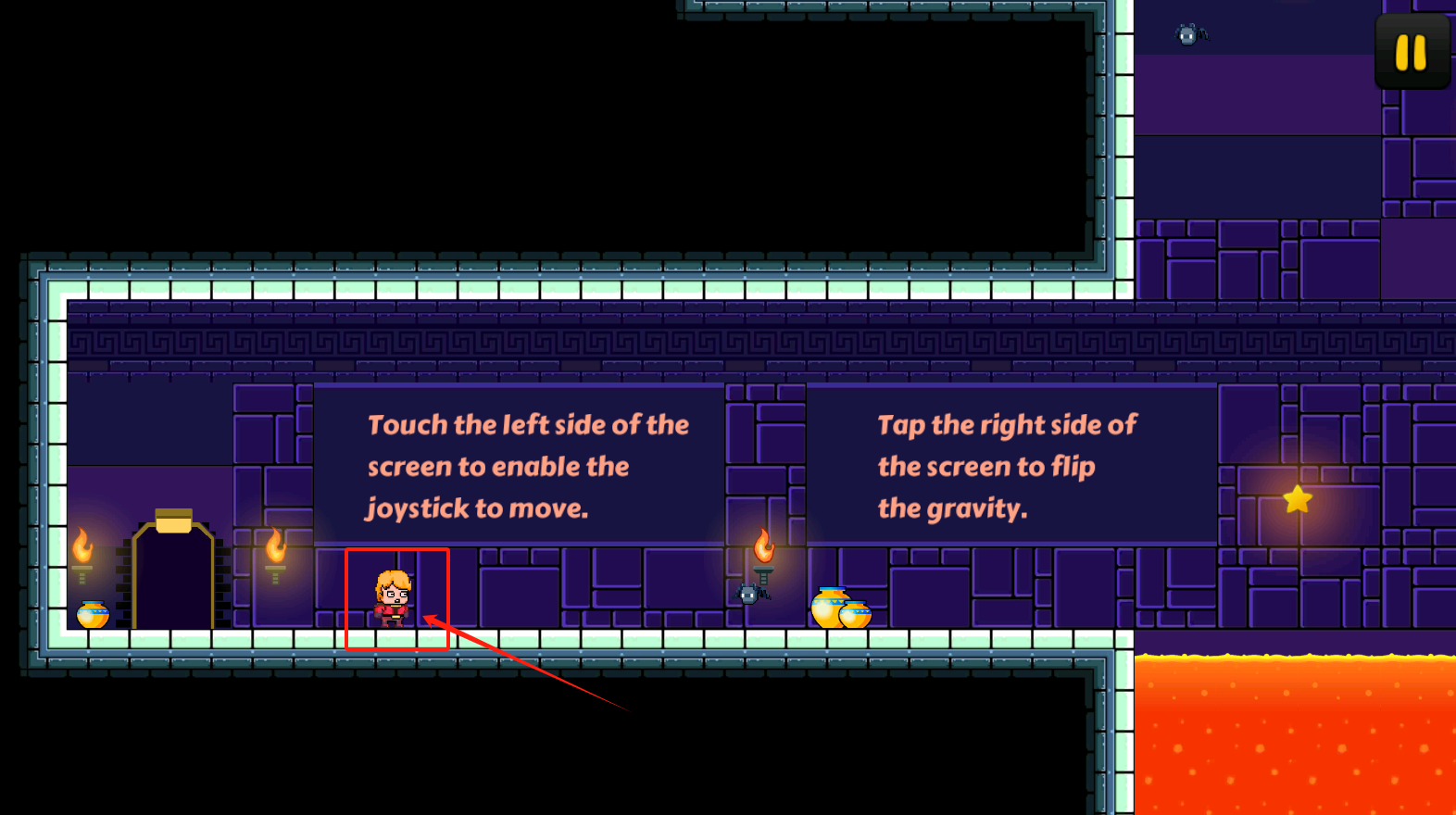 3、左边屏幕滑动控制移动,右边点一下能反转重力,注意收集星星和宝箱。