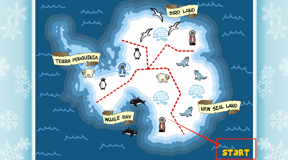 2、点红框里的START开始冒险,跟着虚线路线走,会遇到各种动物。