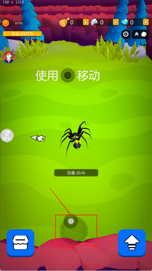 2、左侧控制蜘蛛移动方向,右侧进行攻击、吐丝、技能释放等操作,灵活应对敌人与障碍。