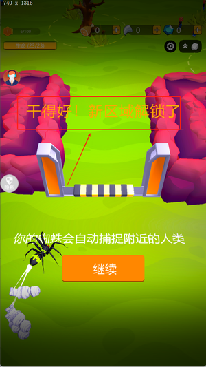 2、完成丰富多样的挑战任务,积累成就与奖品,逐级通关不同区域,体验从普通蜘蛛到城市霸主的成长过程。