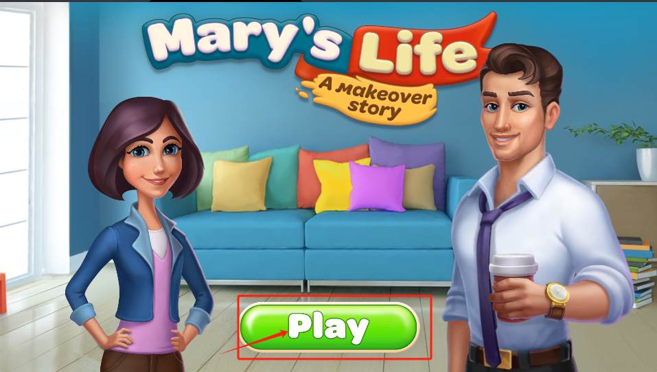 1、点绿色Play按钮开始游戏,标题是Marys Life,下面有游戏副标题。