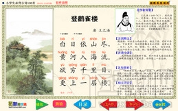 《拓新多媒体教育之少儿学古诗》是专门针对3-12岁幼儿、少儿设计的辅助学习电脑软件。主要内容包括100首古诗词,其中唐诗70首,宋诗、词20首,其他朝代10首,基本函盖少年儿童应该掌握及背诵的所有诗句。每首诗均配有汉语拼音、字词解释、作者介绍、作品分析、名句欣赏、作品配图等等众多内容。并对诗句配以逐句或者整诗朗读,也可对所有诗句进行连续朗读。对诗词中朗朗上口的名句都进行了重点讲解及分析。每首诗词都标有适合学习掌握的年龄。3-4岁有12首,4-5岁有10首,5-6岁15首,从这里可以看出,幼儿应该掌握20首左右的古诗,学龄前儿童应该掌握三十首左右的古诗。到12岁之前或者小学毕业之前,这百首经典诗词就应该都掌握了。