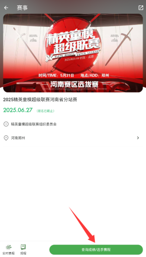3、进入赛事详情页后,点击"赛程成绩"按钮即可查看完整的比赛日程和实时赛果。