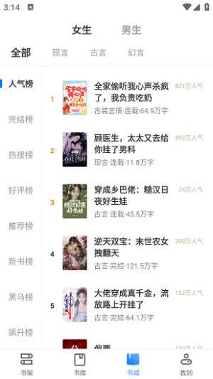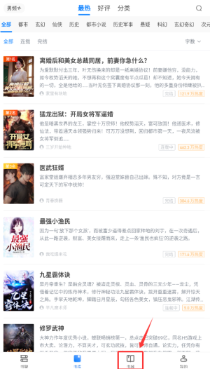 1、进入闪爵小说网APP后,在首页导航栏选择"书城"栏目,这里展示各类小说资源。