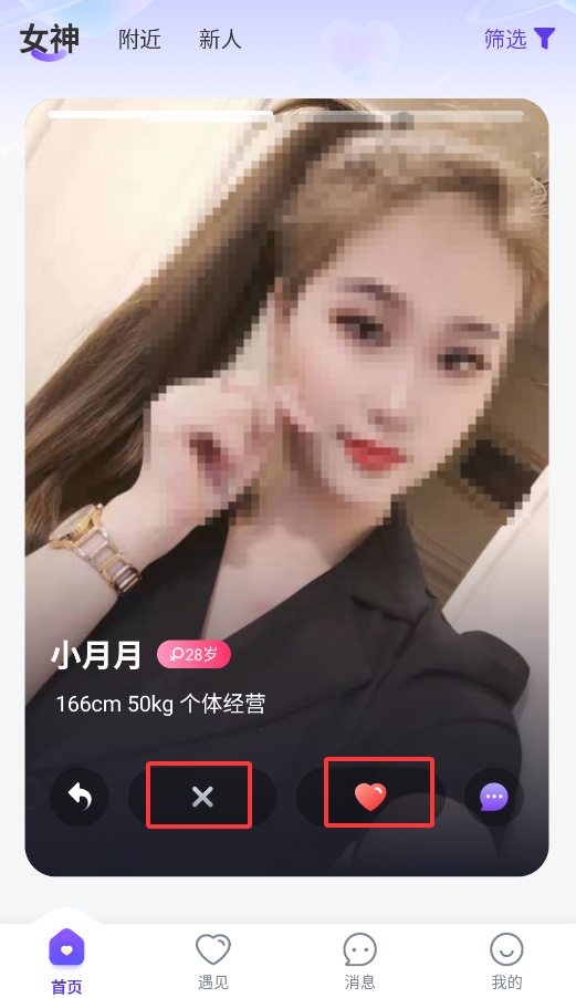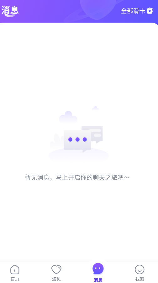 1、进入应用后,首页提供智能匹配功能,通过左滑右滑快速筛选心动对象,轻松找到志趣相投的聊天伙伴。