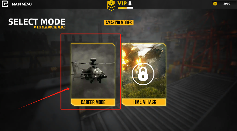 2、选直升机图标的CAREER MODE开始任务,锁着的模式要解锁才能玩。