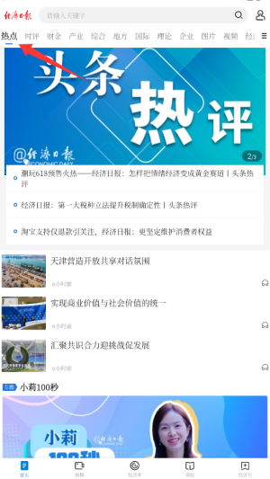 1、启动应用后,直接点击首页顶部的"热点"频道入口,即可浏览实时更新的热门事件与焦点内容。