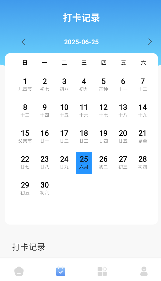 2、可视化数据管理。独创日历视图展示月度考勤,通过色块区分正常/异常打卡状态,历史数据支持按季度回溯查阅。
