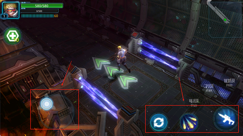2、左侧是控制移动的方向按钮,右侧为攻击、跳跃与技能键,连续点击可释放连招,长按技能键还能触发大范围伤害效果。