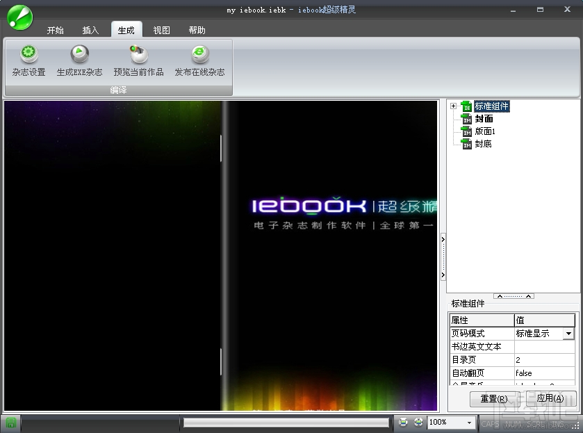 ie视窗系统的操作界面风格更切合用户习惯,让用户操作简单易学,迅速掌握使用。iebook超级精灵适合专业广告、设计及网络制作公司或者企业个人使用。开创具有划时代意义的直接生成四种传播版本,独立EXE文件或者直接web在线版本直接浏览。生成的杂志不需要任何阅读器或插件就可直接观看——打开ie看book!已成为电子杂志业的风向标。
