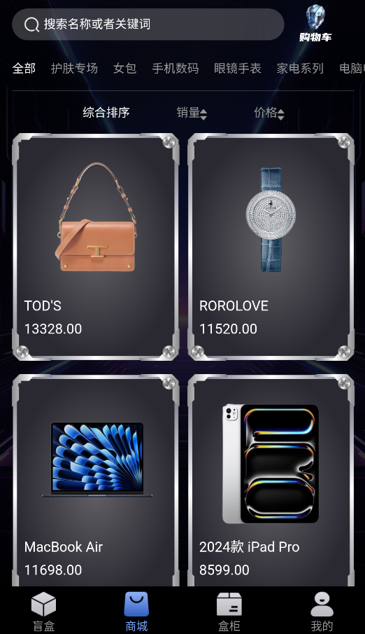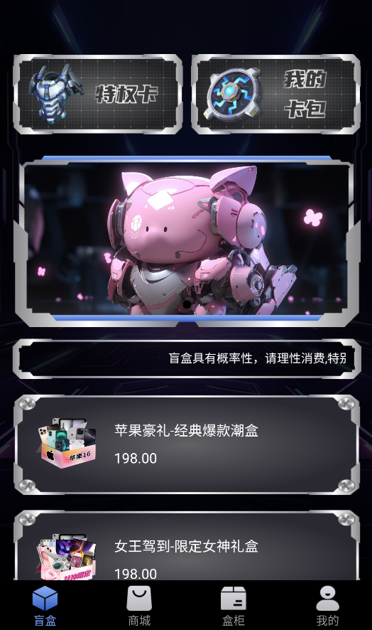 2、智能推荐算法根据浏览记录推送可能感兴趣的盲盒,支持按价格、热度等多维度筛选。