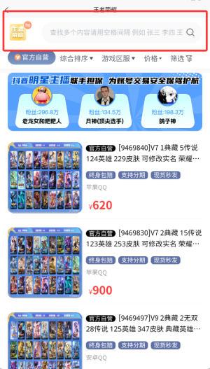 1、作为专业的游戏资产交易平台,覆盖《王者荣耀》《原神》等100+款热门游戏,日均在线账号超5万个。