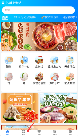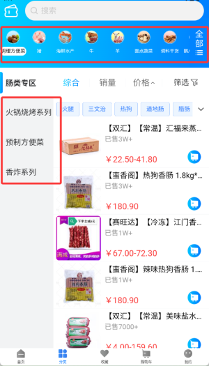 1、进入天环冻品商城APP后,在首页导航栏点击"分类"选项,浏览商品分类列表。