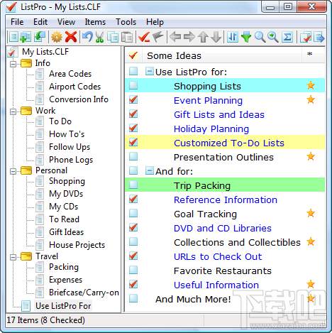 ListPro分为Windows PC桌面端和移动设备端。从1997年发行至今,其移动设备端更风靡全球,ListPro被誉为智能手机上的“杀手级”软件。 程序可快速简便的建立适合各种记录格式的列表。列表具备密码保护、自动计算、闹钟提醒、同步移动设备、精确筛选和查找项目信息,以及强大的附注栏功能。其附注栏可插入各种图片及实时链接。作为用于日常生活与工作学习方面,对收藏各种个人信息和分门别类归总管理信息将起到举足轻重的作用。软件提供了各种日常实用模板,也可根据个人需要任意更改定制属于自己的列表模板。软件支持同步苹果iPhone 和 iPod touch 移动设备端的 ListPro 文件。