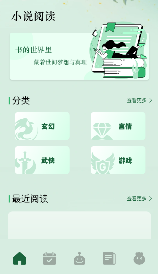 1、打开应用后,首页提供多种小说分类(如玄幻、言情、科幻等),点击类型标签即可浏览对应书库,热门作品会显示"小编推荐"标识。
