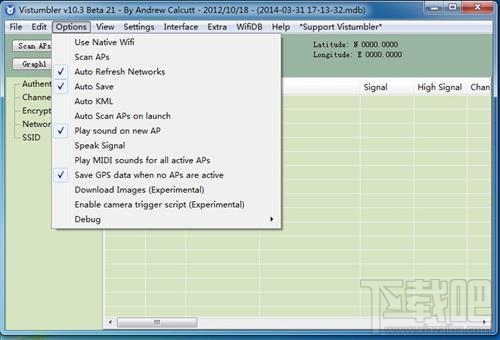 无线网络扫描工具 Vistumbler,能扫描查看ap信道,强度,活跃、MAC 地址、SSID、 信号、频道、认证、加密和网络类型。还可以显示SSID和RSSI。Vistumbler还支持GPS设备。是一款很实用的无线网络扫描工具。你值得拥有!