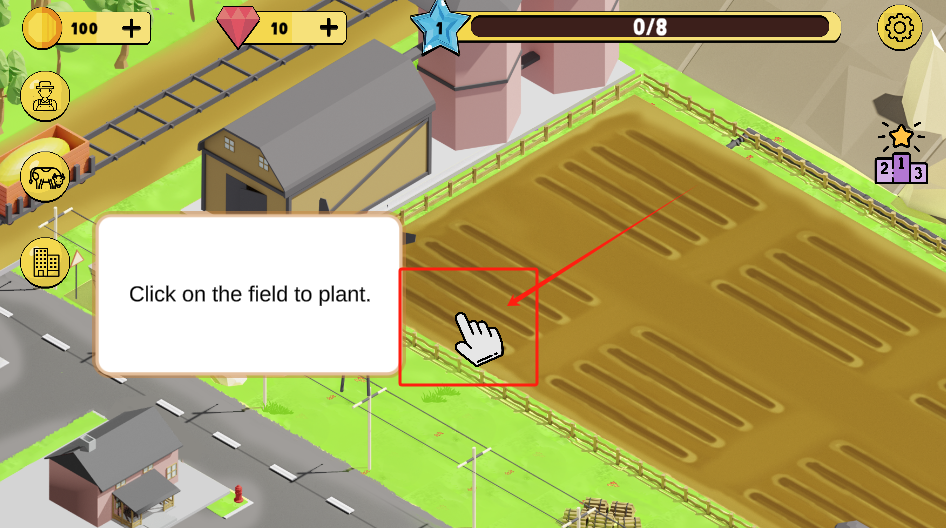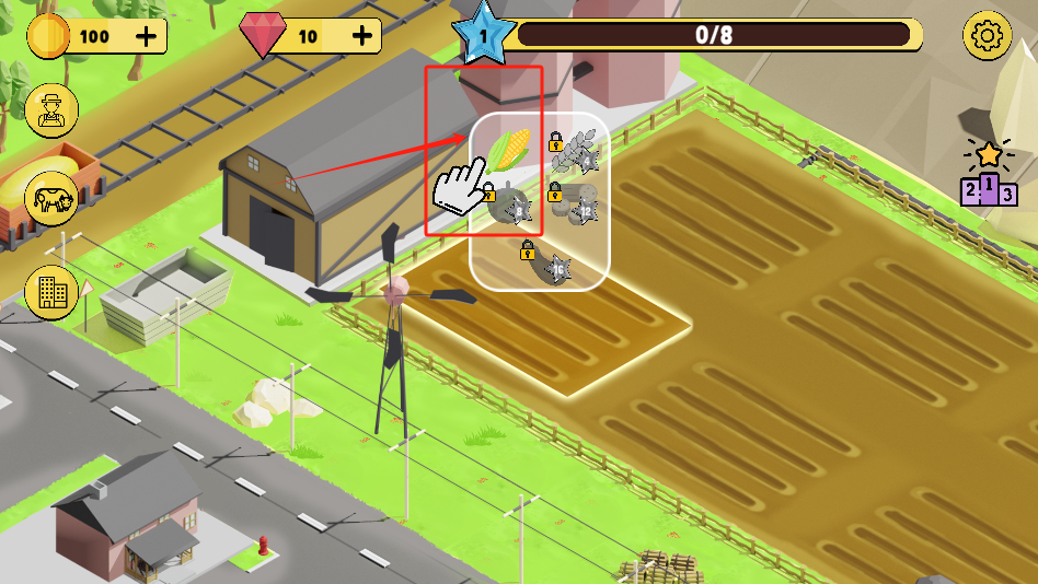 1、点击空着的黄土地,种下作物,上面显示有100金币和10钻石。