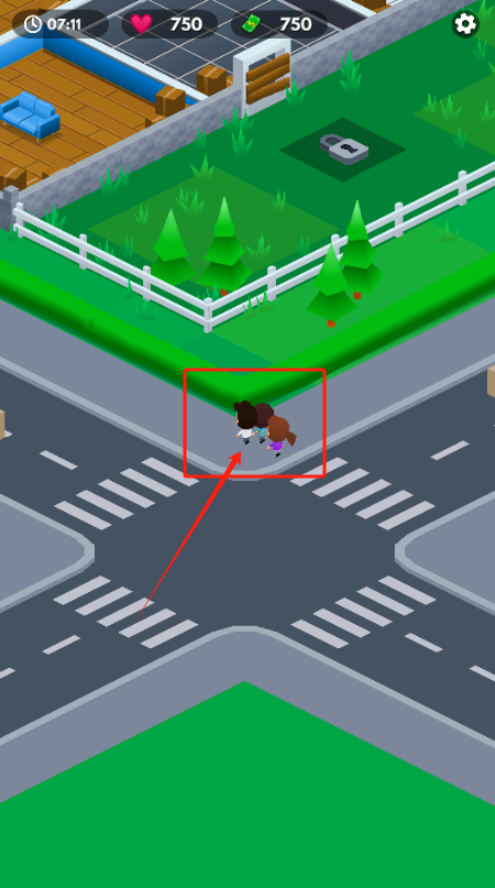 2、早上7点11分,查看750爱心值和750金币,注意马路上骑马的NPC。