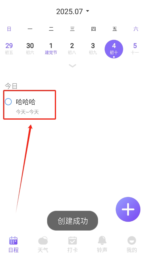 3、保存后回到软件首页,就能看到刚才添加的日程已经显示在页面上了。