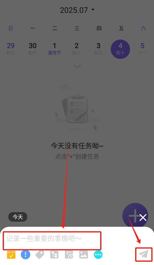 2、输入日程内容后,点击右侧的小飞机图标,这样就能把日程保存起来。