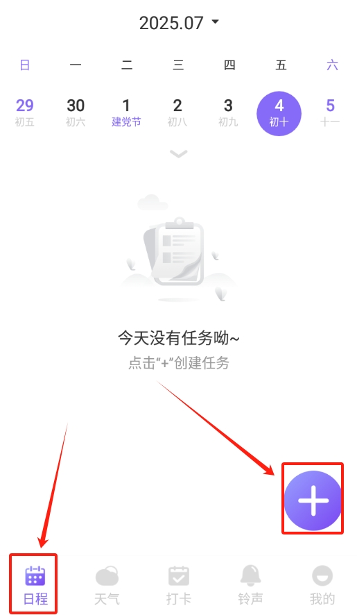 1、打开每日便签软件,在首页日程页面点右下角的加号来添加新日程。