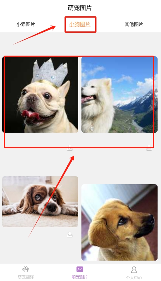 3、喜欢小狗也没问题,切换到小狗图片专区,各种汪星人萌照,瞬间治愈你的心。