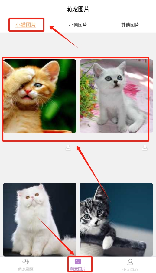 2、想撸猫云吸猫,在软件里找到对应板块,超萌小猫图片随便看,可爱到挪不开眼。