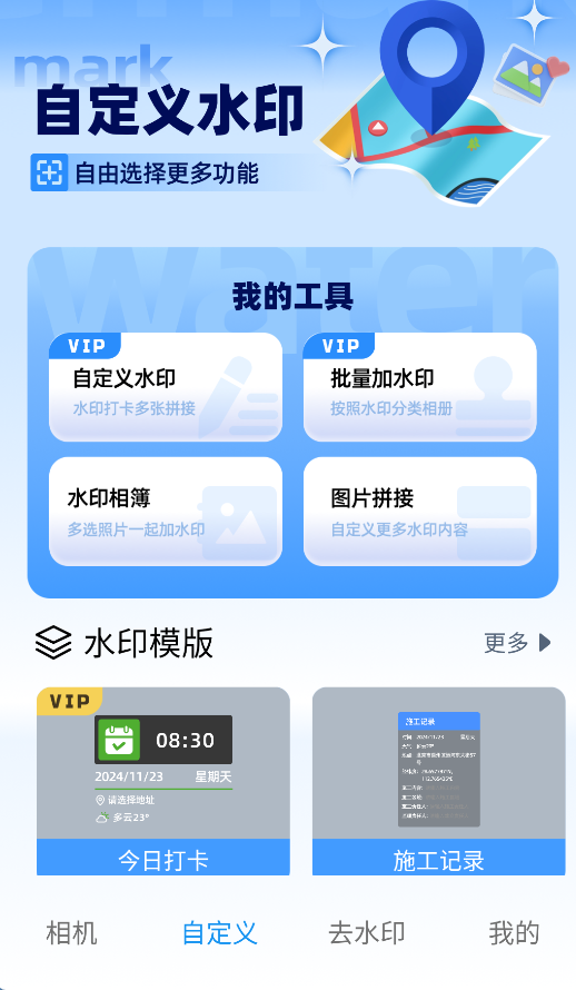 1、实时水印拍摄:拍摄时可直接叠加行业专属水印模板,涵盖考勤打卡、工程巡检等20+专业场景,满足政务、商务等不同需求。