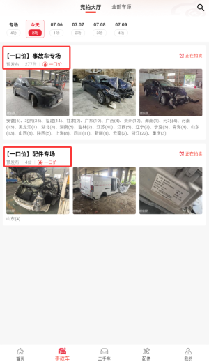 1、拍卖中心分类清晰,支持按车辆类型、地域、价格等条件筛选。"今日推荐"专区展示高性价比车源,把握竞拍机会。