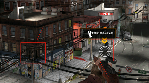 2、左侧滑动屏幕调整视角,右侧进行瞄准射击。