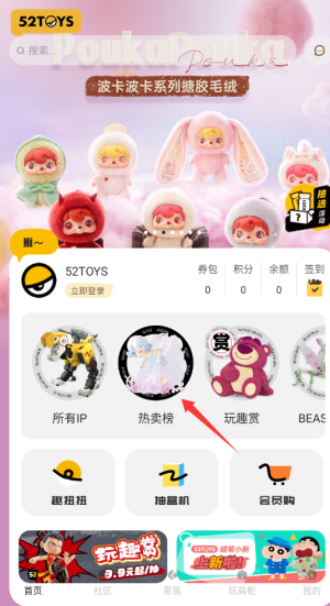 1、进入52TOYSAPP后,在首页点击"热卖榜"选项,查看当前热门商品排行。