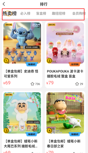 1、商品分类系统完善,可按IP系列、角色、价格等条件筛选。"新品速递"专栏每周更新上市商品,把握收藏先机。