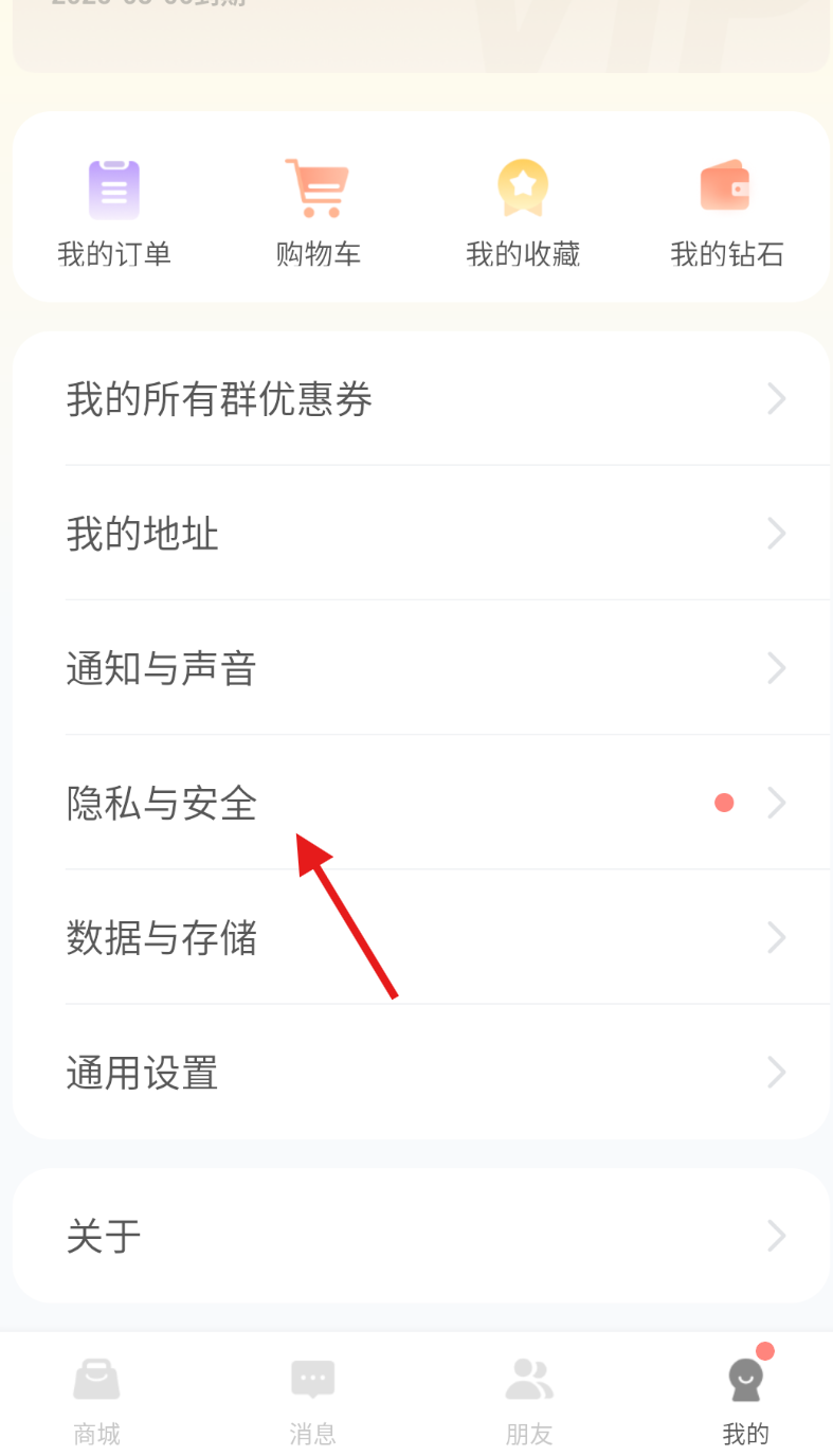 2、在 “我的” 页面向下滑动屏幕,找到并点击 “隐私与安全” 选项,打开设置界面。