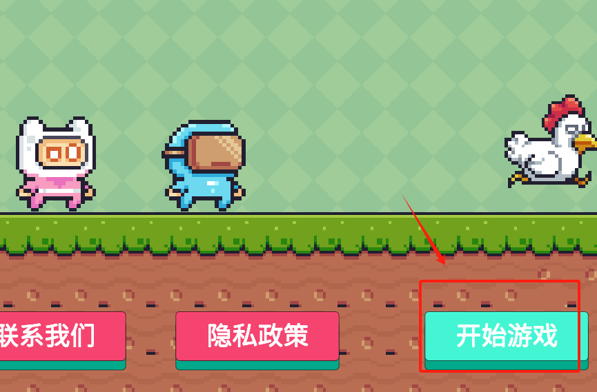 1、看到像素画面下方绿色开始游戏按钮,用手指点它,就能进入这个搞笑农场游戏啦。
