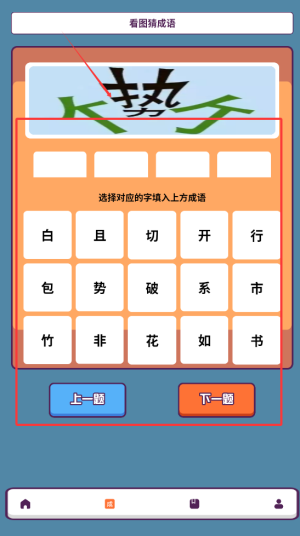 1、看图猜成语功能通过生动形象的图画提示,考验用户的联想能力和成语储备量。