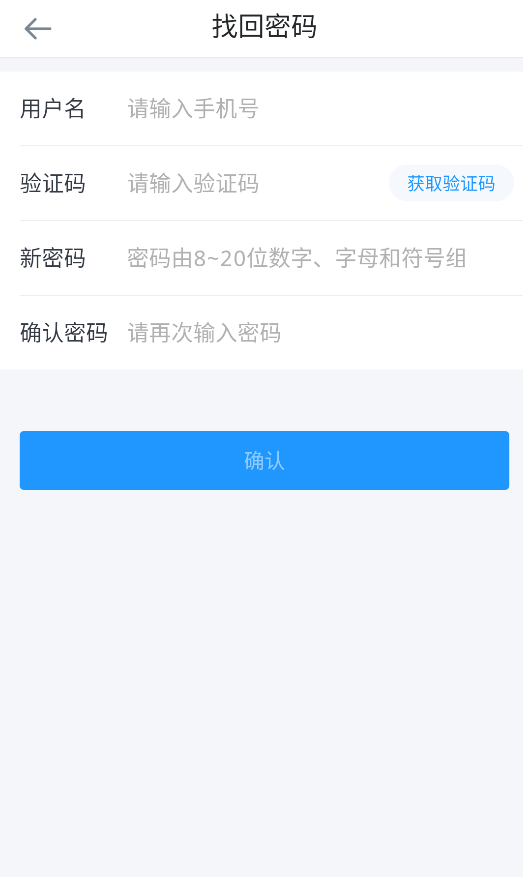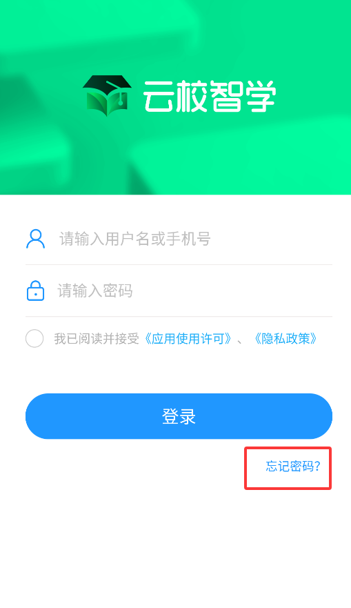 1、启动应用后,在登录页面点击"忘记密码"选项进入密码重置流程。