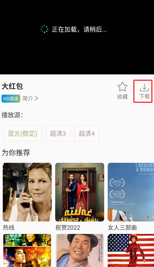 2、进入详情页后点击"下载"按钮,选择清晰度即可开始缓存。