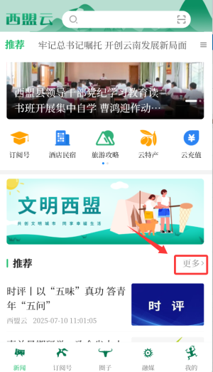 2、在首页导航栏点击"更多"选项,展开完整功能菜单和资讯分类。