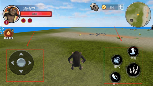 2、左侧是移动与跳跃按钮,右侧则是攻击与技能释放键,界面顶部显示当前血量与敌人位置。
