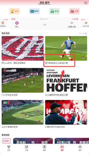 2、在底部导航栏选择"德甲"分类,查看当前赛季的联赛赛程和直播安排。