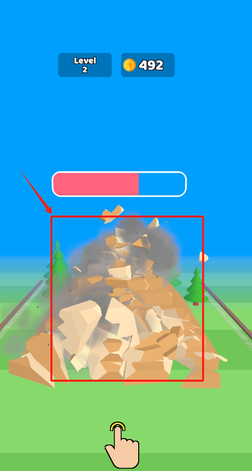 3、看到破碎石块和手形按钮,点下方红色手印继续画画破坏,争取拿更多金币呀。