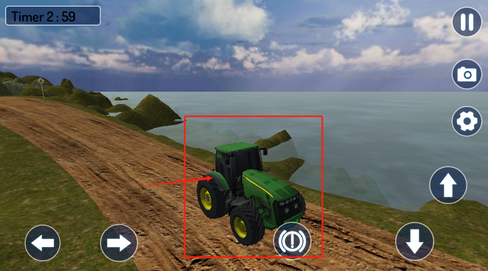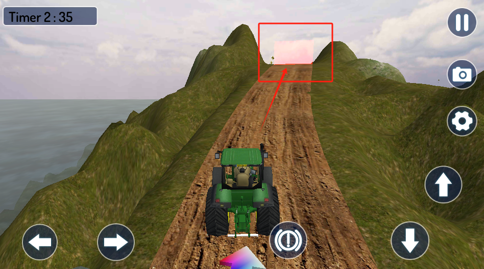 2、拖拉机在土路行驶,注意右上角2分59秒倒计时,控制方向别翻车。