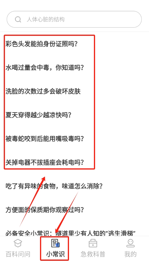3、想知道一些日常小常识的话,找到小常识页面点进去,里面有不少生活里能用上的小知识,挺实用的。